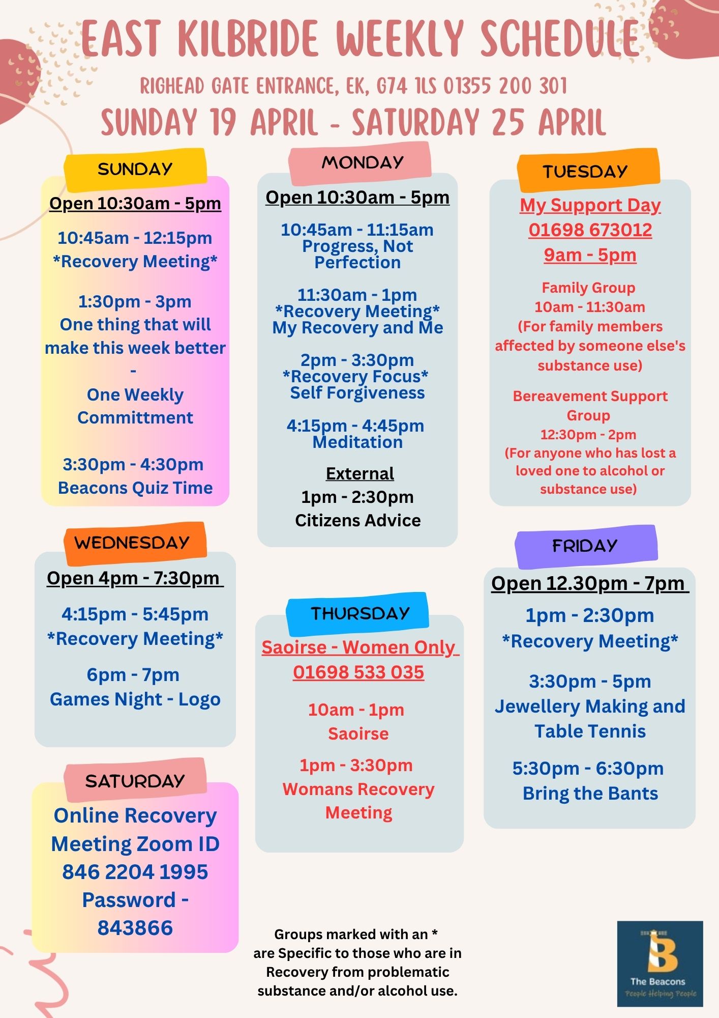 Welcome to the East Kilbride Beacon page! This is a friendly space where our members are in the driving seat, deciding what activities go on here and when it's just relaxing time. You can keep updated about what's on here and always feel free to pop down and join in or chill as the mood takes you. Some people like things to do, other like the freedom to simply socialise or read a book in good company and safe surroundings. We are here for our members to do as they please.